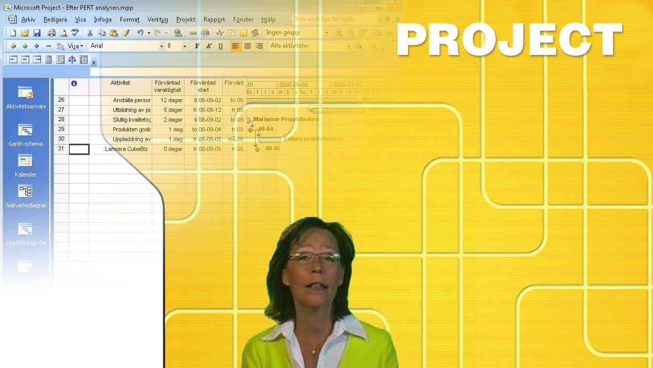 Med Klick Datas e-kurs lär du dig ha koll på projekten, hur de fortlöper, hantera resurser och kostnader, korrigera det som håller på att gå fel, informera och skriva ut rapporter på olika sätt och i olika format. E-kursen Lär dig Microsoft Project 2007 del 1 startar från scratch du lär dig hitta i fönstret och blir bekant med uttryck som Gannt, vyer och tabeller får koll på dom olika kalendrarna i Project och hur dom samverkar.